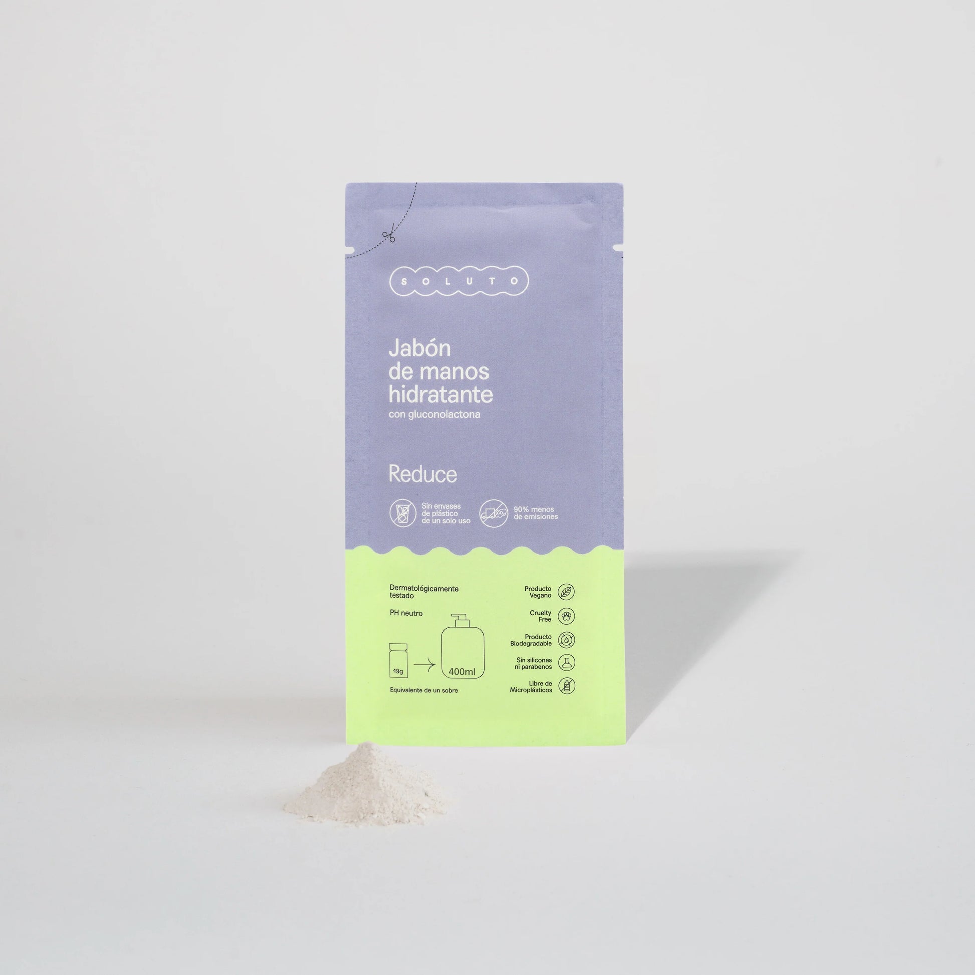 El Jabón de Manos Hidratante de Soluto es una alternativa sostenible y eficaz al jabón convencional. Esta recarga en polvo permite obtener 400 ml de jabón líquido, simplemente mezclando el contenido con agua.
